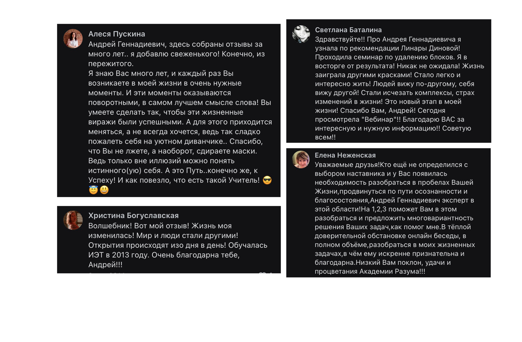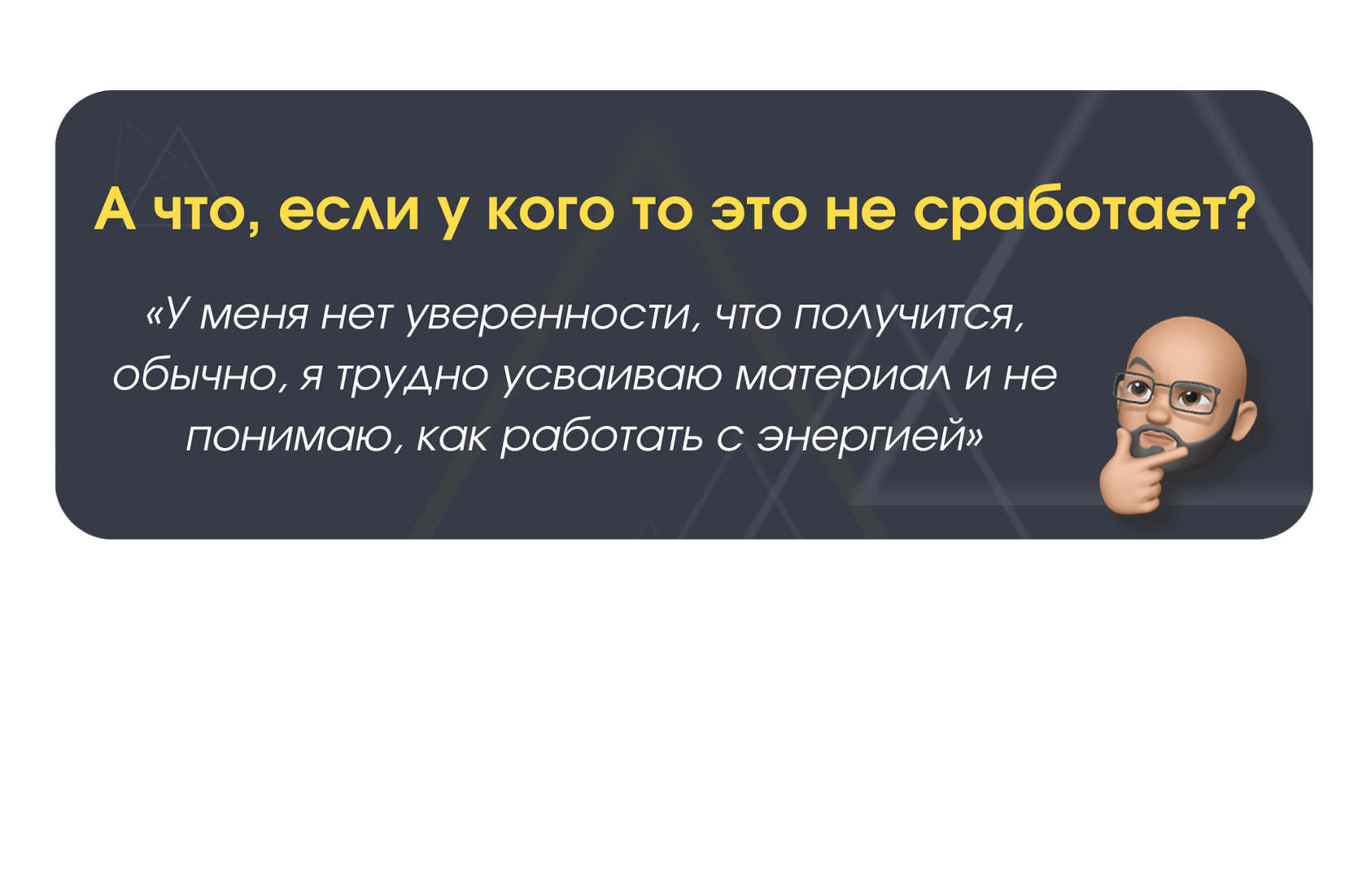 Видите, как легко и поэтапно вы пройдете этот путь? А универсальность методики позволяет решать проблемы в любой области: здоровье, финансы, отношения и тд.